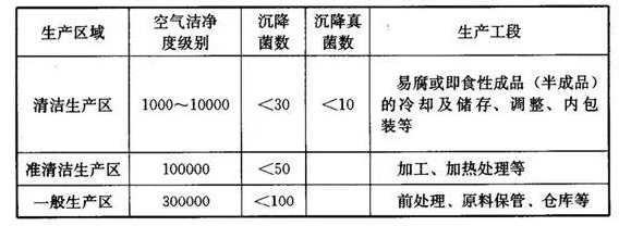 食品厂不同生产区域和空气洁净度等级
