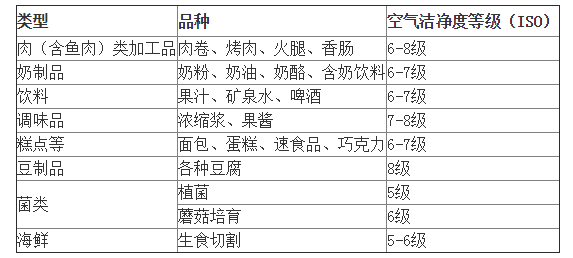 为了使食品生产全过程不受微生物污染,要对原料、水、设备等进行处理,生产车间的环境是否洁净也是重要的一个条件。以下为我们整理的在洁净室生产的食品种类以及各种食品生产要求的洁净度和食品生产不同阶段的洁净度。