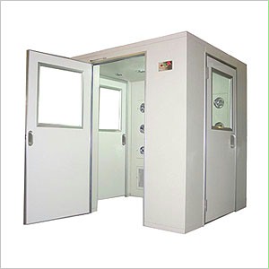 风淋室是人进入洁净室所必需的通道,它可以减少进出洁净室所带来的污染问题,减少由于人货进出带来的大量尘埃粒子由洁净室的入口处安装功能齐全的“气闸室”可以减少空气污染微粒的数量,当人货通过风淋室时,污染微粒被经过高效过滤的高度洁净空气射掉,25m/s以上的高风速确保了有效的喷射和飘移微粒经过初效和高效两级过滤器基本过滤掉。为了保持风淋的安全使用,维持洁净室环境的洁净度