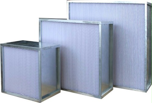 有隔板高效过滤器是用超细纤维作滤料、优质牛皮纸热滚压成形或采用胶版纸、铝铂作分隔板,与木框或铝合金框胶和而成,具有过滤效率高,阻力低,风量大的优点。有隔板高效过滤器多采用双面上胶的铜版纸作分隔板,目的是为了防止分隔板受冷热干湿的影响发生收缩,从而散发颗粒。适合于低级别的非单向流项目与各种净化设备和洁净厂房。有隔板过滤器中,铝隔板过滤器主要用于高温或高湿环境,纸隔板过滤器用在普通洁净环境。有隔板风量相对较大,可以用作耐高温过滤。